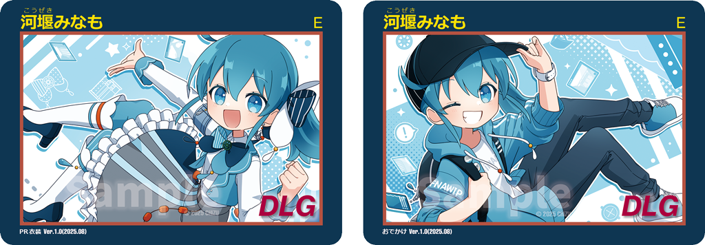 アクリルキーホルダーにはPR衣装Ver.を、ダムカードケースにはおでかけVer.をお付けします。
