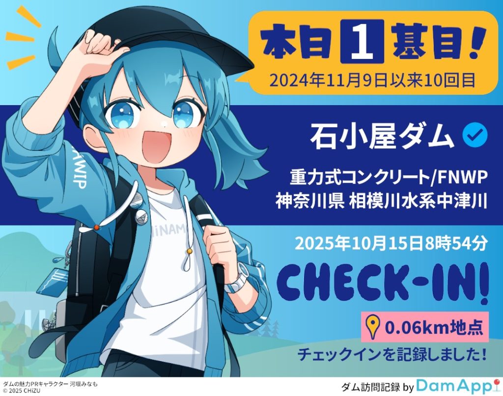 ダムへの訪問を記録、及びダムカードを記録した際の画面にみなもちゃんが登場します。